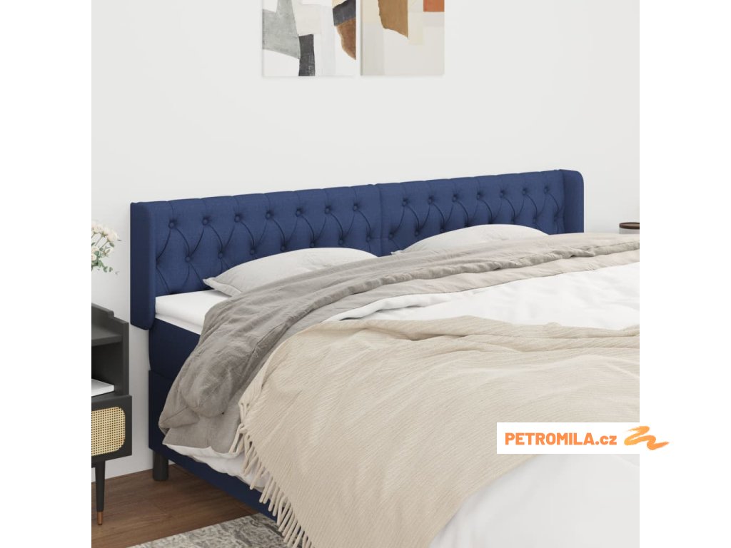 Čelo postele typu ušák modré 203 x 16 x 78/88 cm textil