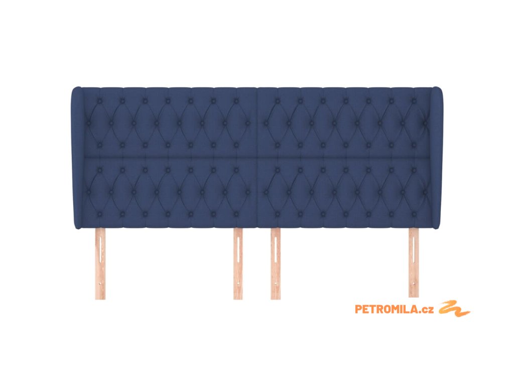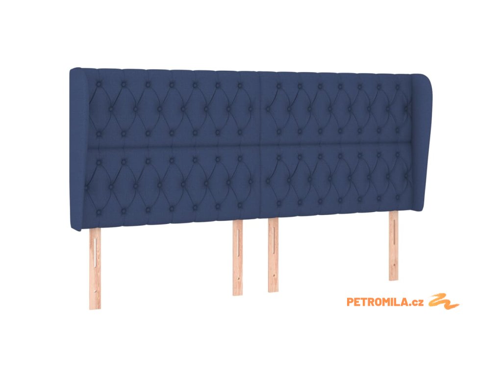 Čelo postele typu ušák modré 203x23x118/128 cm textil