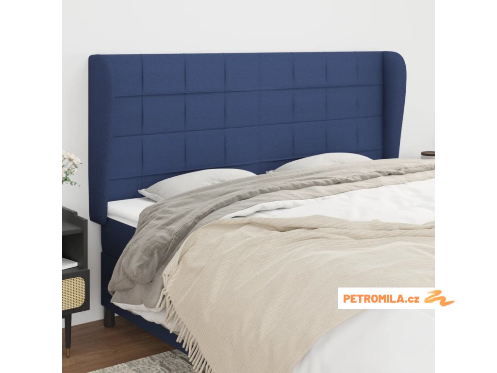 Čelo postele typu ušák modré 203x23x118/128 cm textil