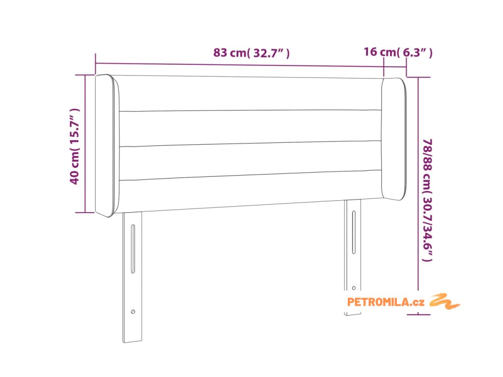 Čelo postele typu ušák modré 83 x 16 x 78/88 cm textil