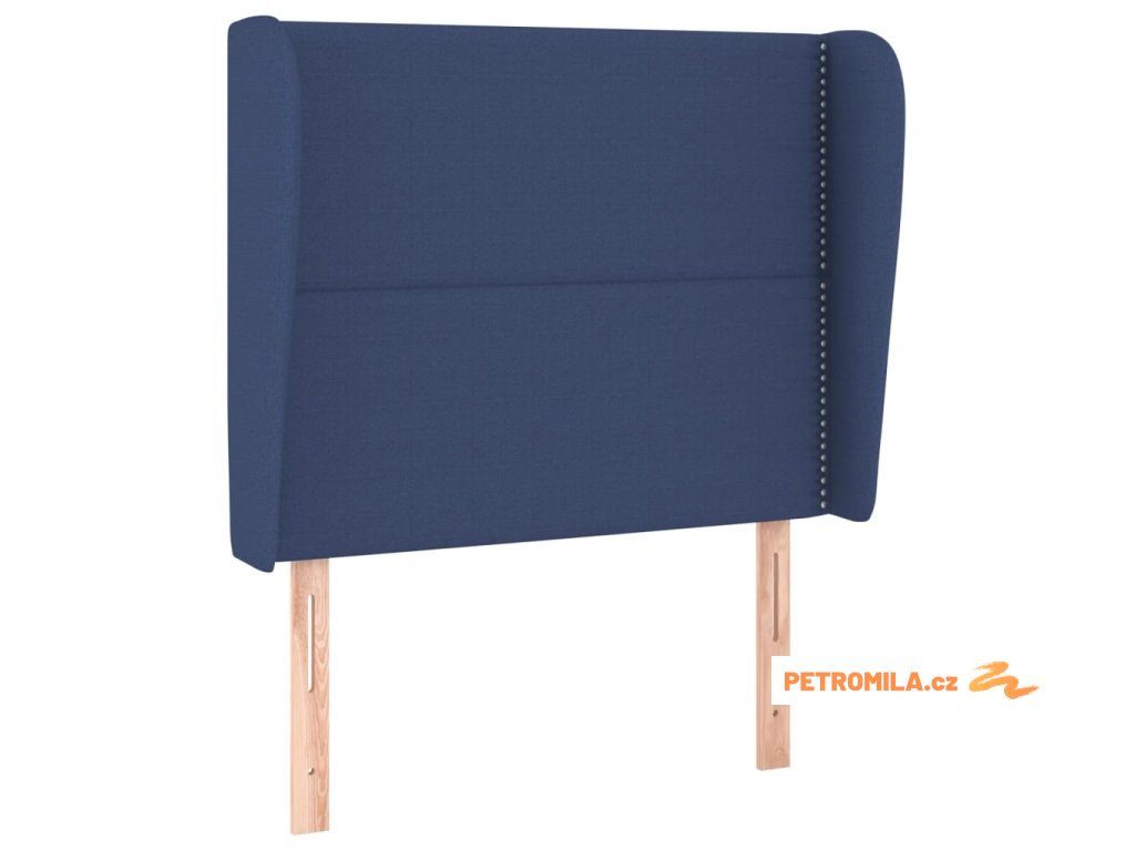 Čelo postele typu ušák modré 93x23x118/128 cm textil
