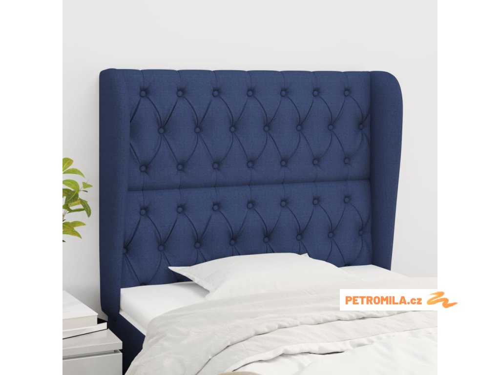 Čelo postele typu ušák modré 93x23x118/128 cm textil