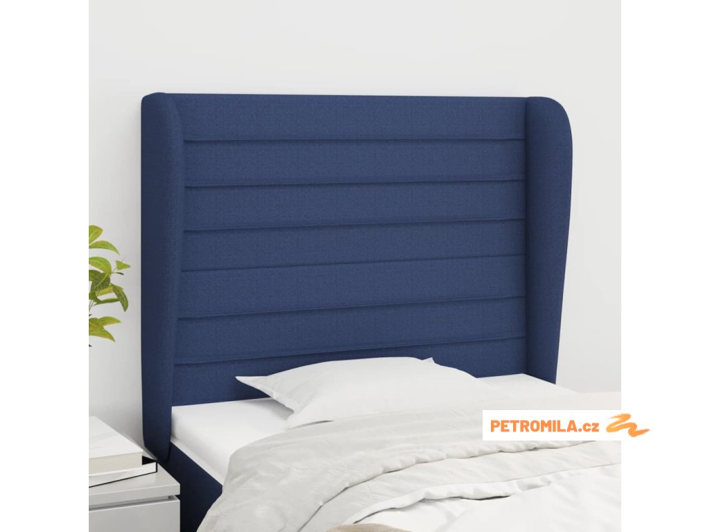 Čelo postele typu ušák modré 93x23x118/128 cm textil