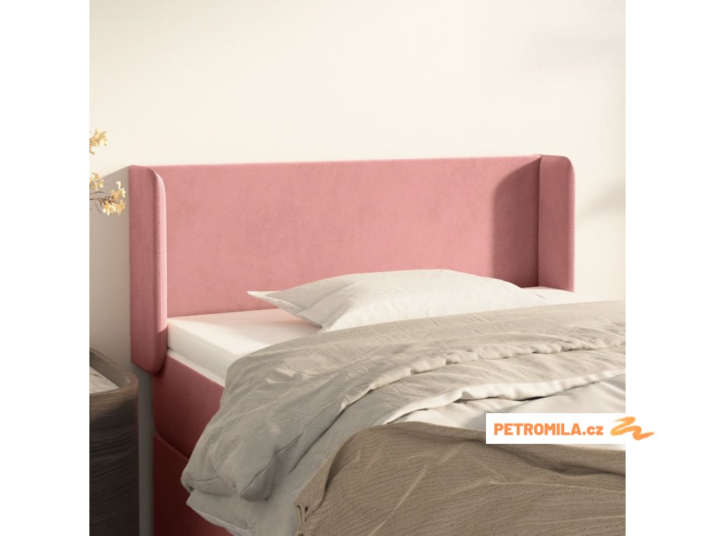 Čelo postele typu ušák růžová 103 x 16 x 78/88 cm samet