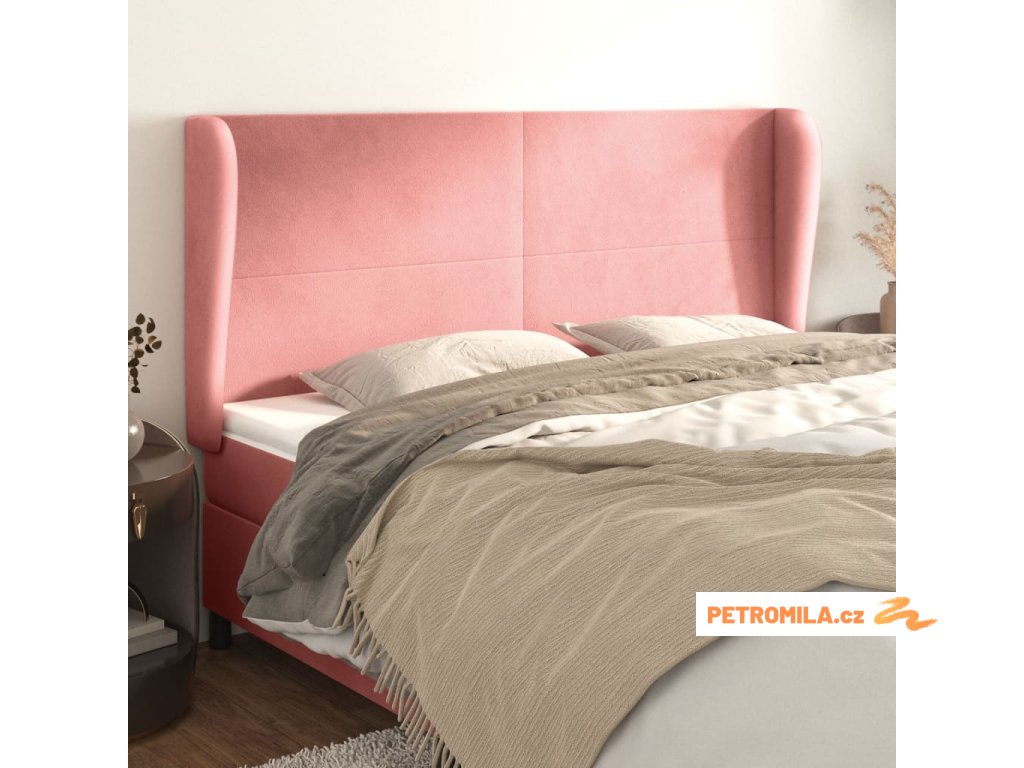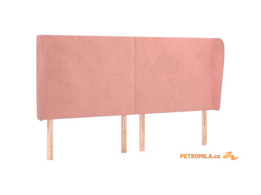 Čelo postele typu ušák růžová 203x23x118/128 cm samet
