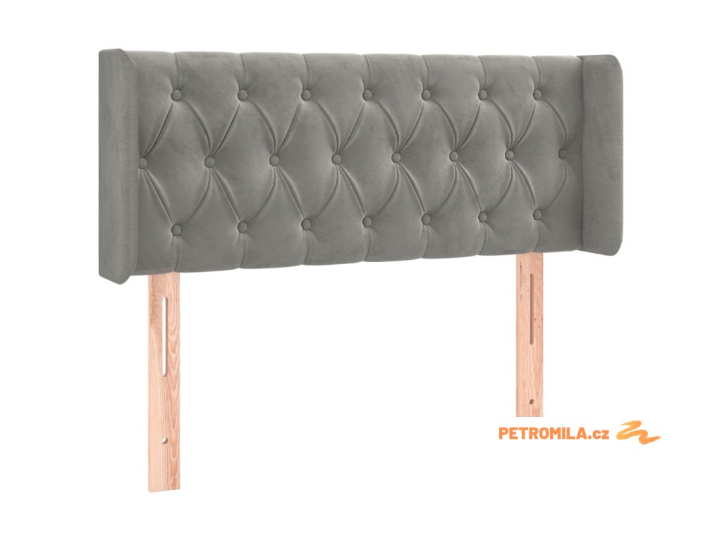 Čelo postele typu ušák světle šedé 103x16x78/88 cm samet