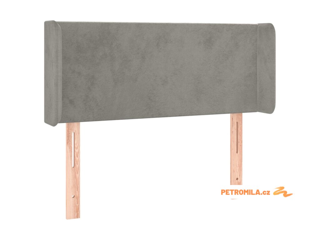 Čelo postele typu ušák světle šedé 103x16x78/88 cm samet