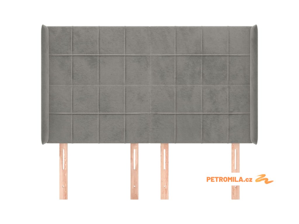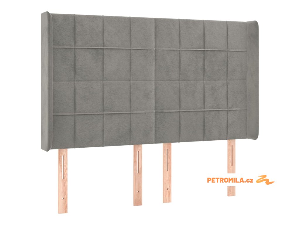 Čelo postele typu ušák světle šedé 147x16x118/128 cm samet