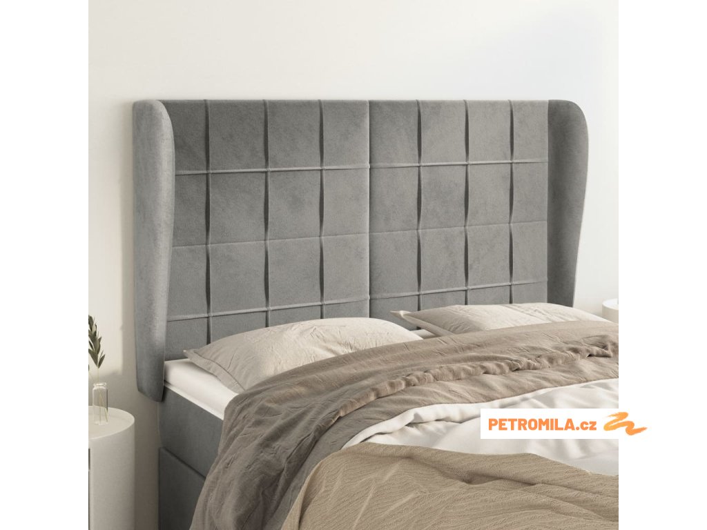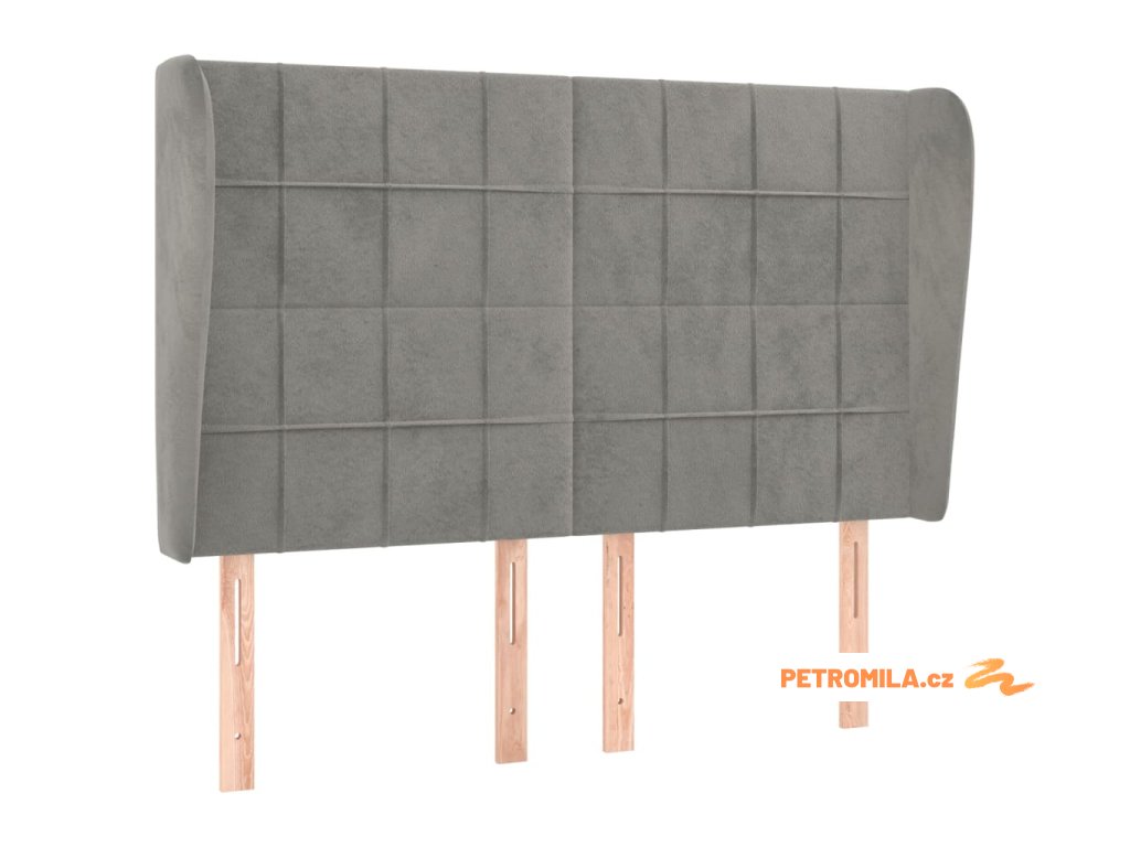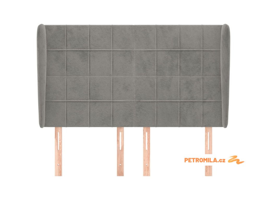 Čelo postele typu ušák světle šedé 147x23x118/128 cm samet