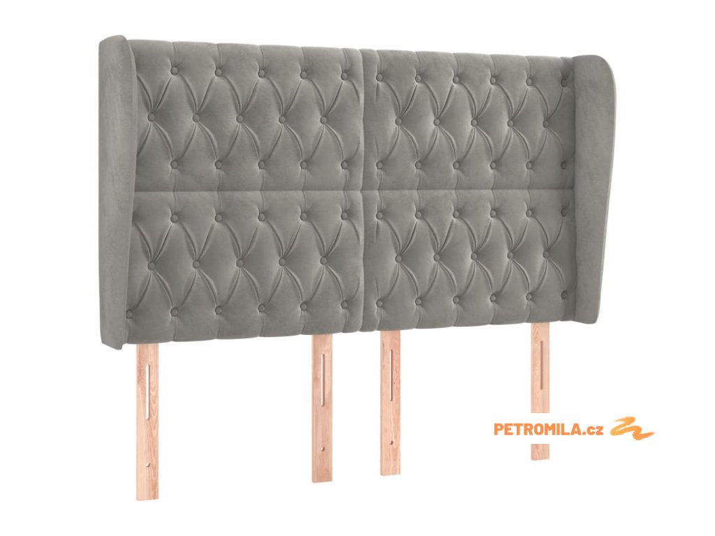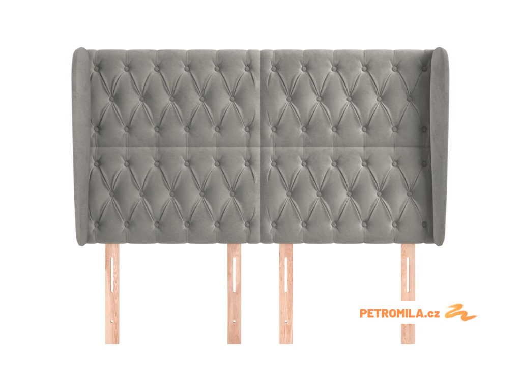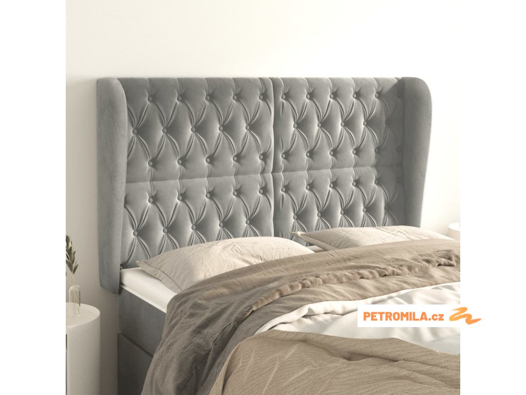 Čelo postele typu ušák světle šedé 147x23x118/128 cm samet