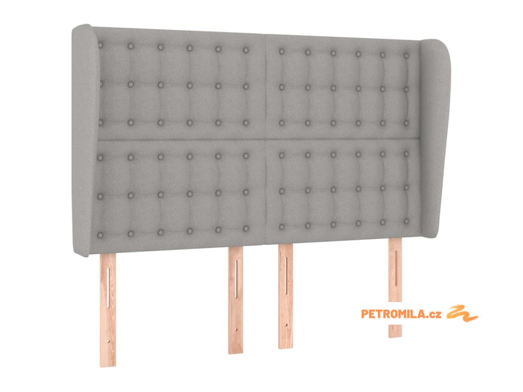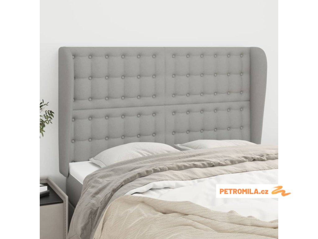 Čelo postele typu ušák světle šedé 147x23x118/128 cm textil