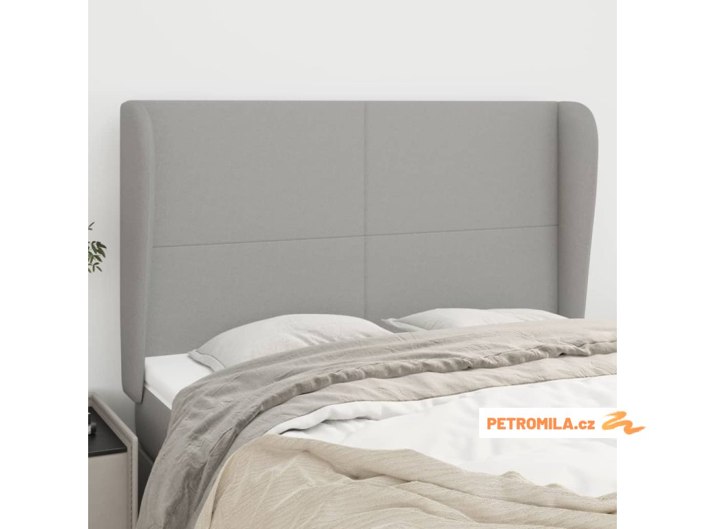 Čelo postele typu ušák světle šedé 147x23x118/128 cm textil