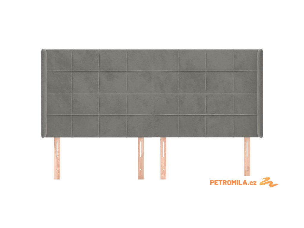 Čelo postele typu ušák světle šedé 163x16x118/128 cm samet