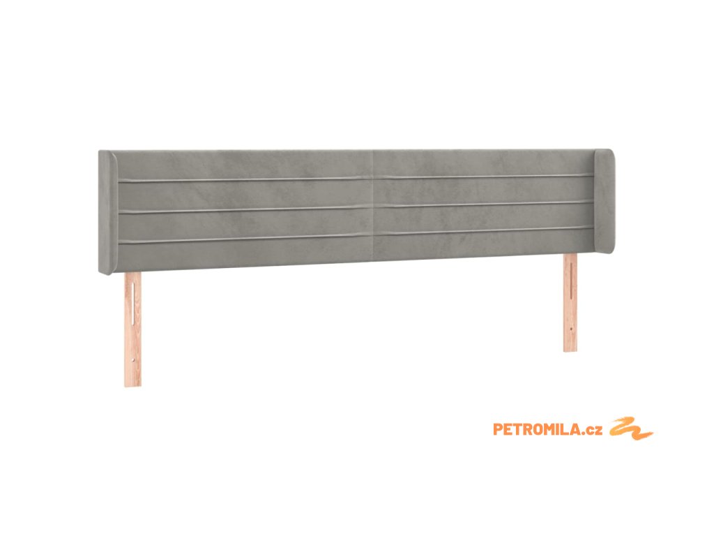 Čelo postele typu ušák světle šedé 163x16x78/88 cm samet