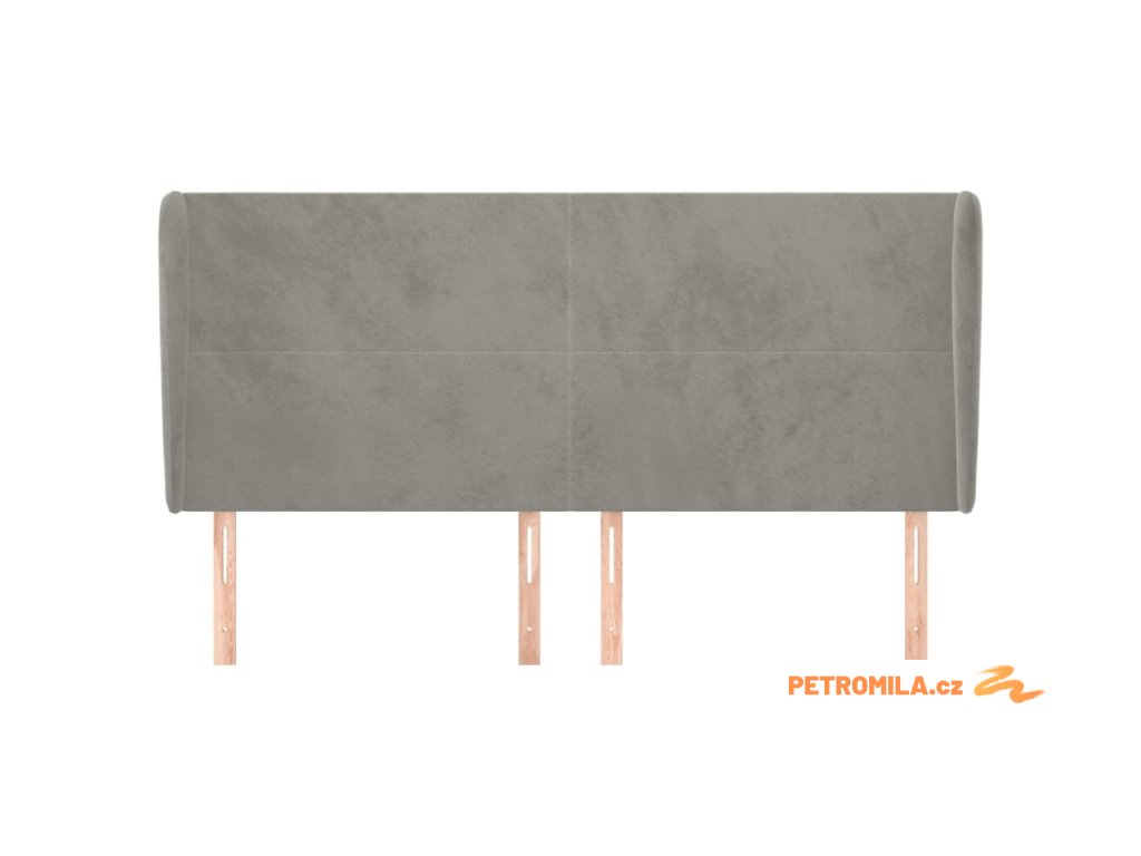 Čelo postele typu ušák světle šedé 163x23x118/128 cm samet