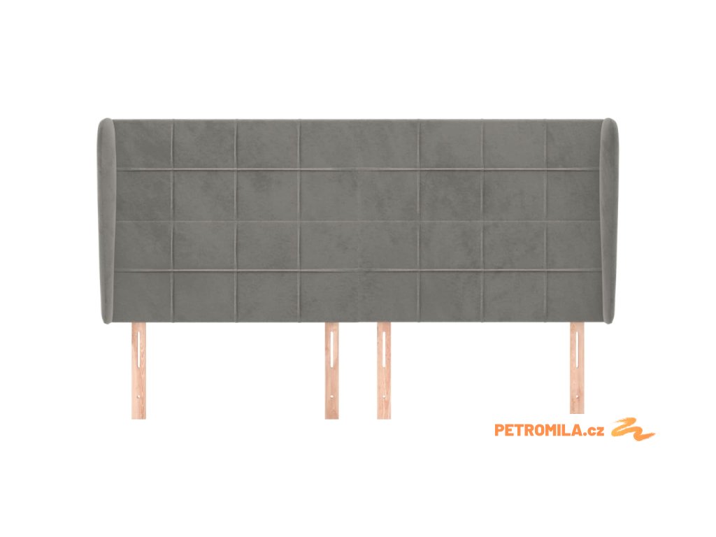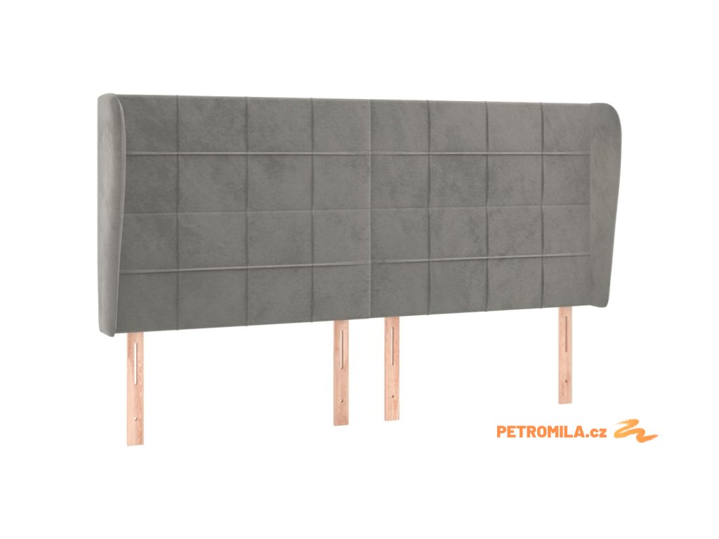 Čelo postele typu ušák světle šedé 163x23x118/128 cm samet