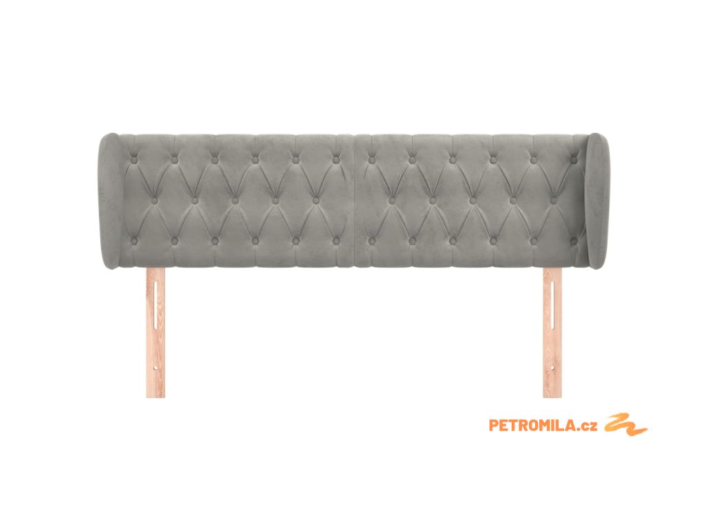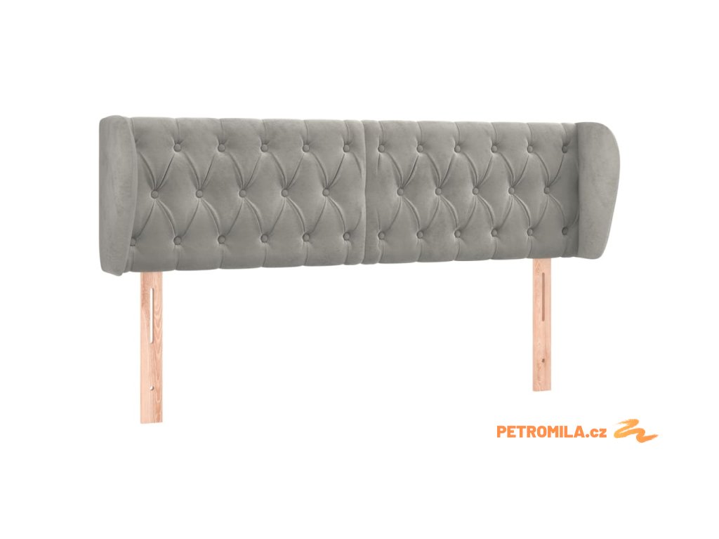 Čelo postele typu ušák světle šedé 163x23x78/88 cm samet