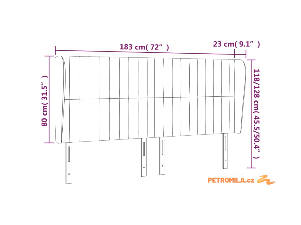 Čelo postele typu ušák světle šedé 183x23x118/128 cm textil