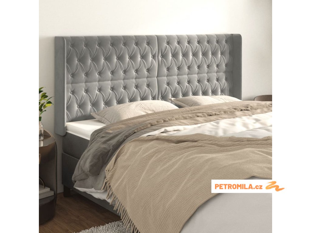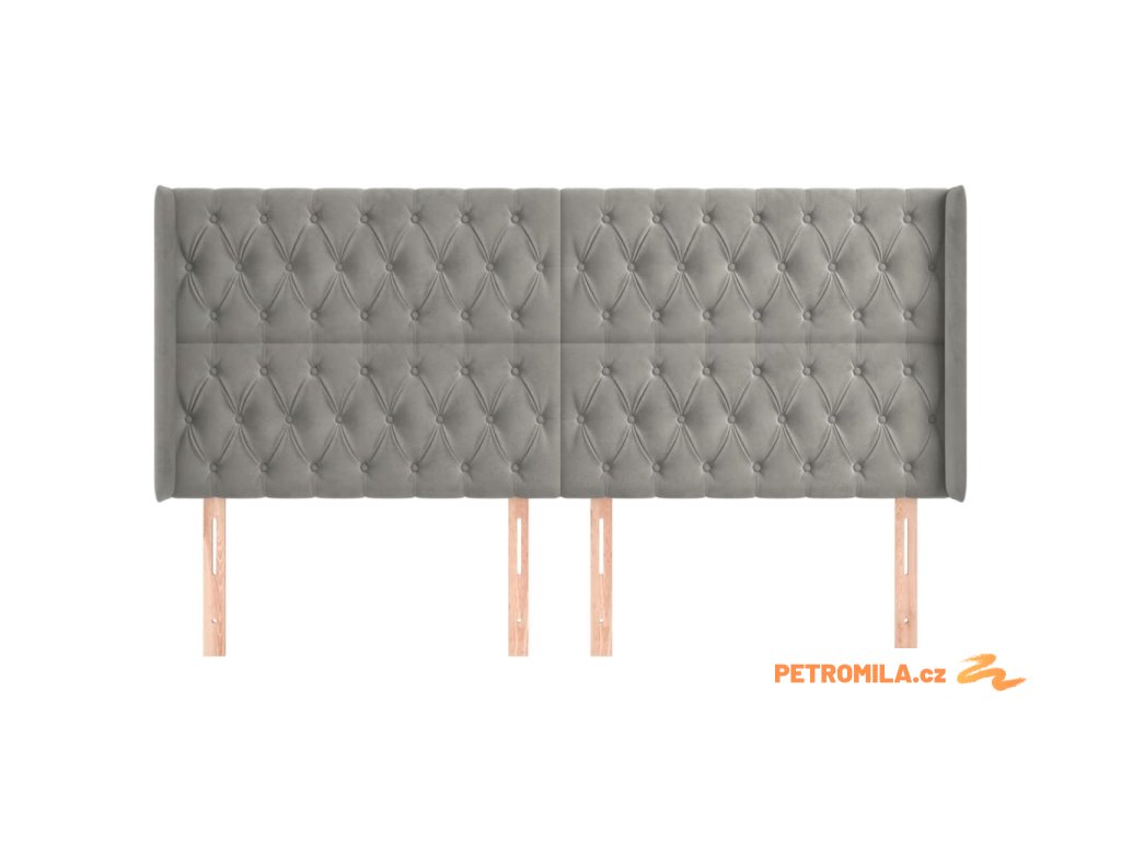 Čelo postele typu ušák světle šedé 203x16x118/128 cm samet