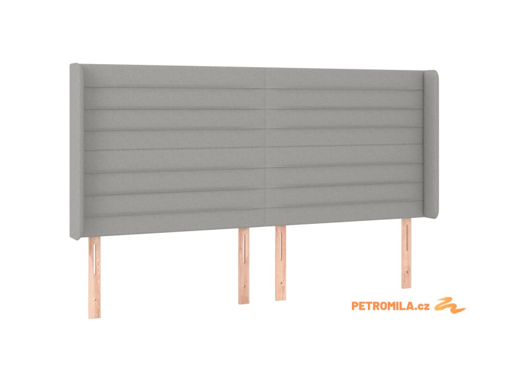 Čelo postele typu ušák světle šedé 203x16x118/128 cm textil