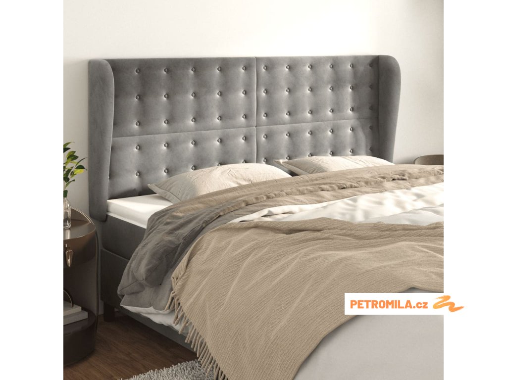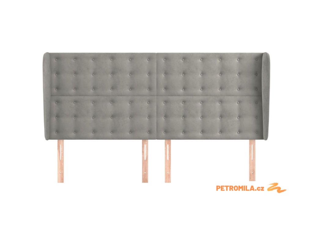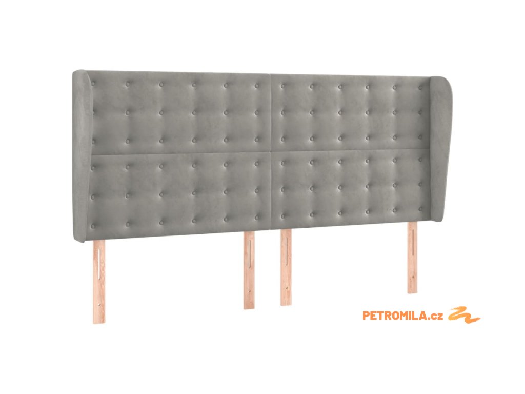 Čelo postele typu ušák světle šedé 203x23x118/128 cm samet