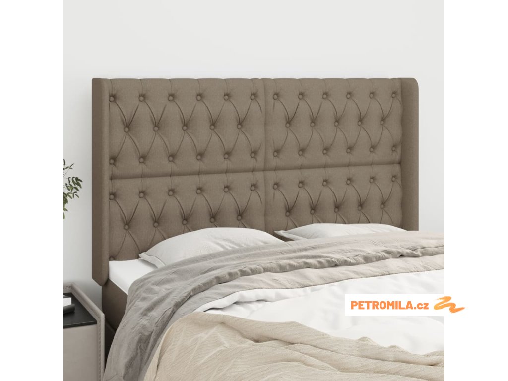Čelo postele typu ušák taupe 163x16x118/128 cm textil
