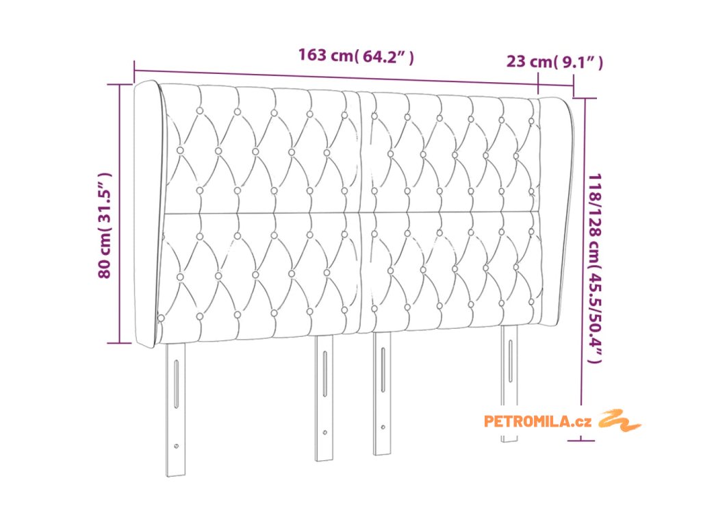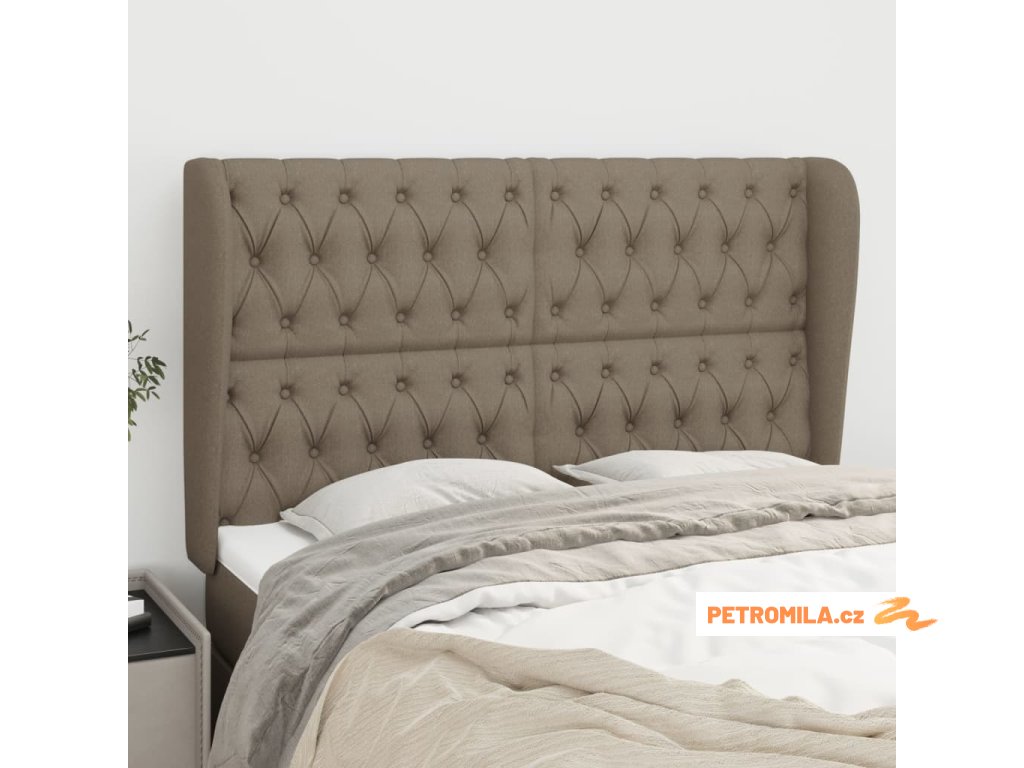 Čelo postele typu ušák taupe 163x23x118/128 cm textil
