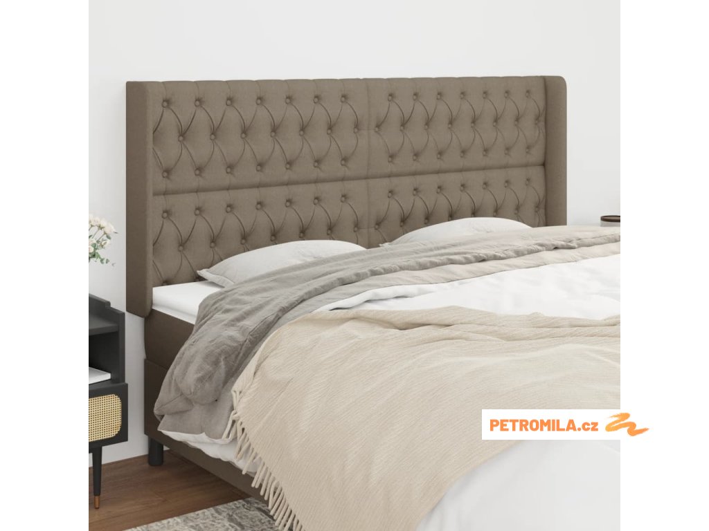 Čelo postele typu ušák taupe 183x16x118/128 cm textil