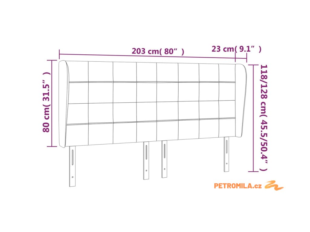 - Celkové rozměry: 203 x 23 x 118/128 cm (Š x H x V)