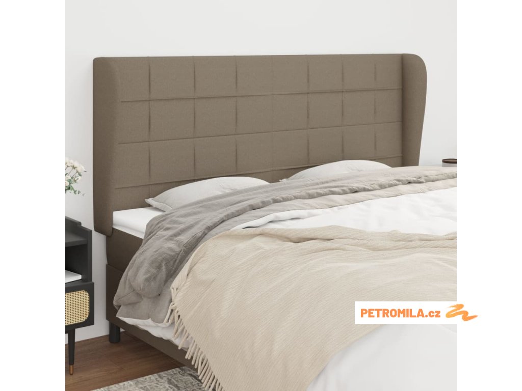 Čelo postele typu ušák taupe 203x23x118/128 cm textil
