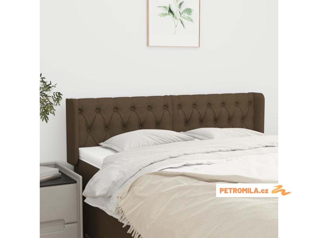 Čelo postele typu ušák tmavě hnědé 147x16x78/88 cm textil