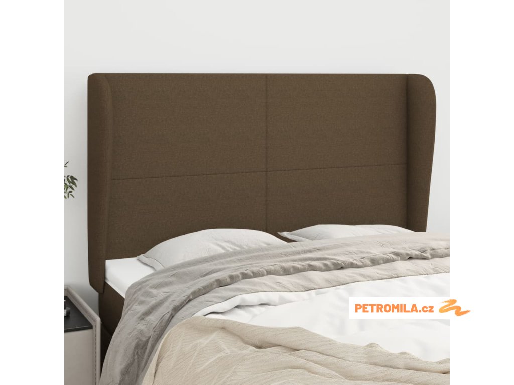 Čelo postele typu ušák tmavě hnědé 147x23x118/128 cm textil