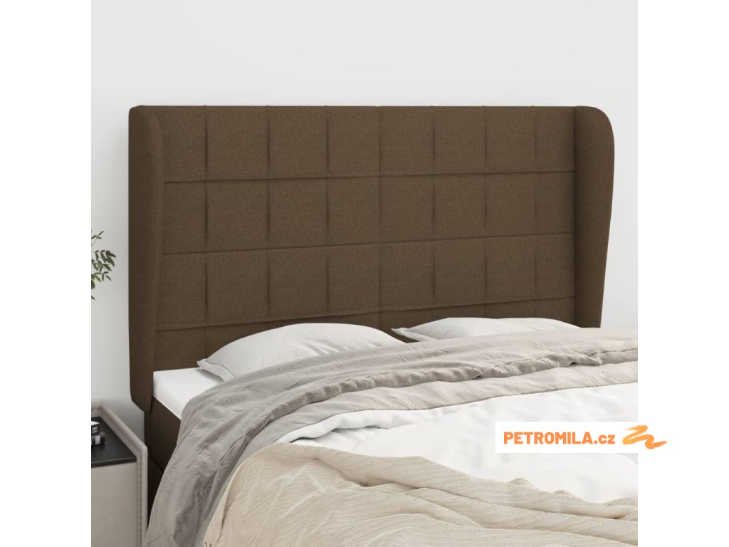 Čelo postele typu ušák tmavě hnědé 147x23x118/128 cm textil