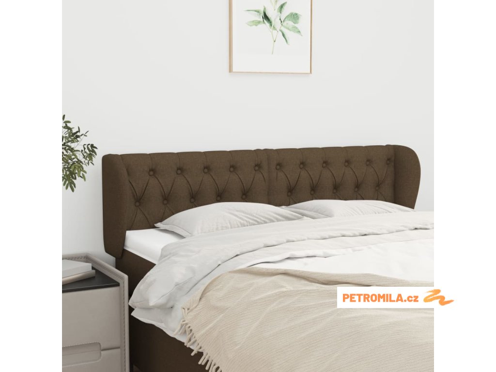 Čelo postele typu ušák tmavě hnědé 147x23x78/88 cm textil