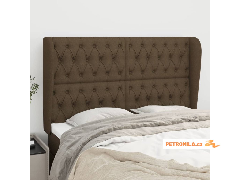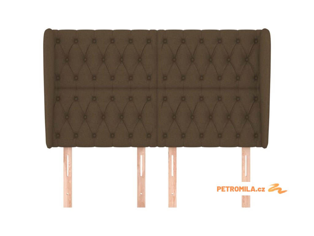 Čelo postele typu ušák tmavě hnědé 163x23x118/128 cm textil