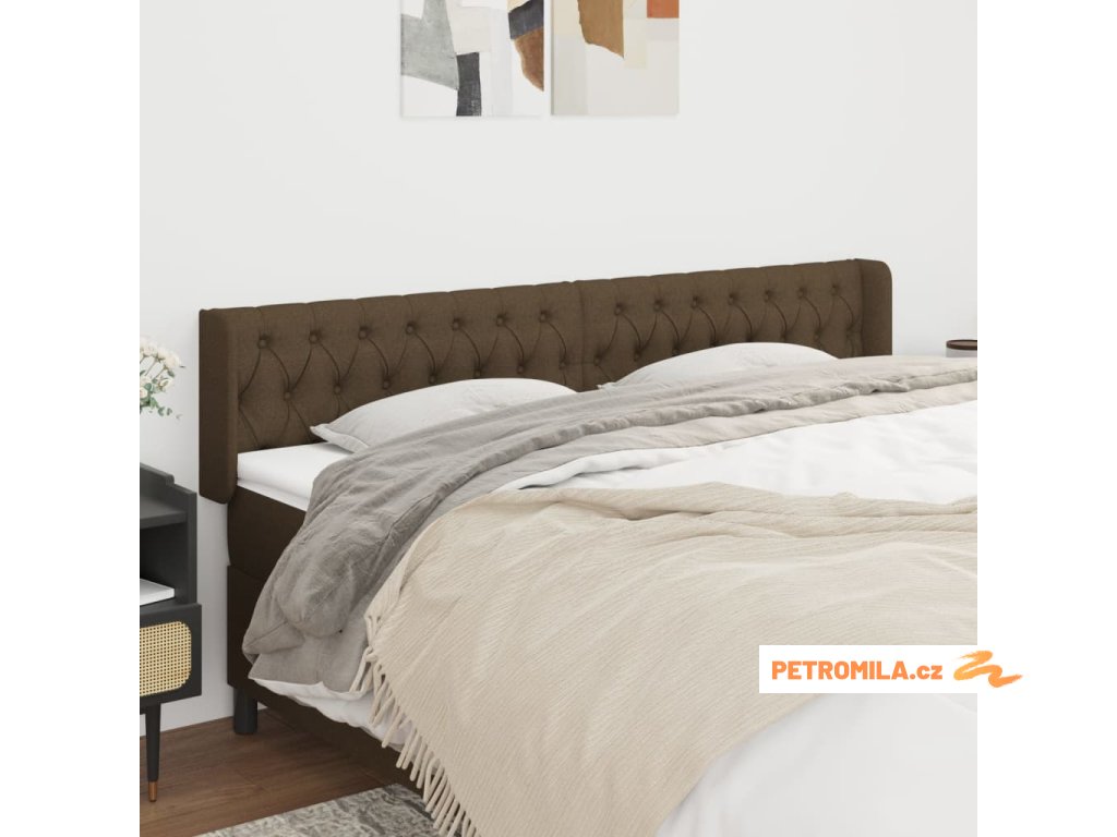 Čelo postele typu ušák tmavě hnědé 183x16x78/88 cm textil