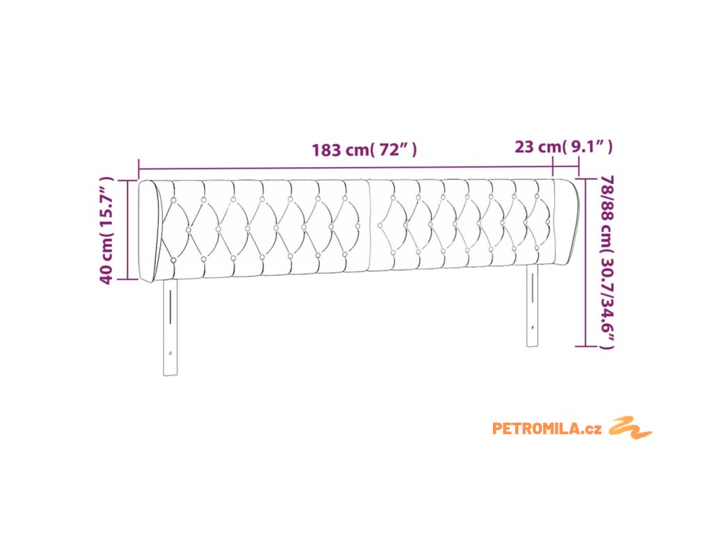 Čelo postele typu ušák tmavě hnědé 183x23x78/88 cm textil