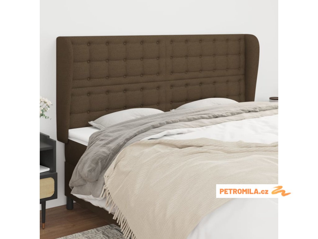 Čelo postele typu ušák tmavě hnědé 203x23x118/128 cm textil