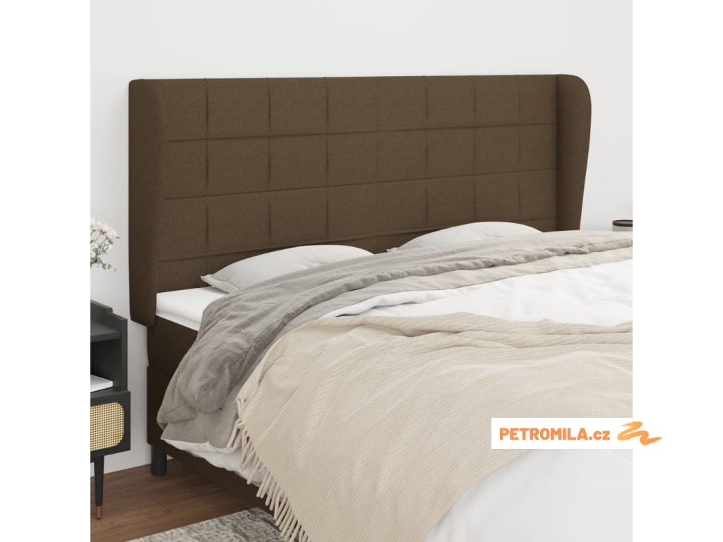 Čelo postele typu ušák tmavě hnědé 203x23x118/128 cm textil