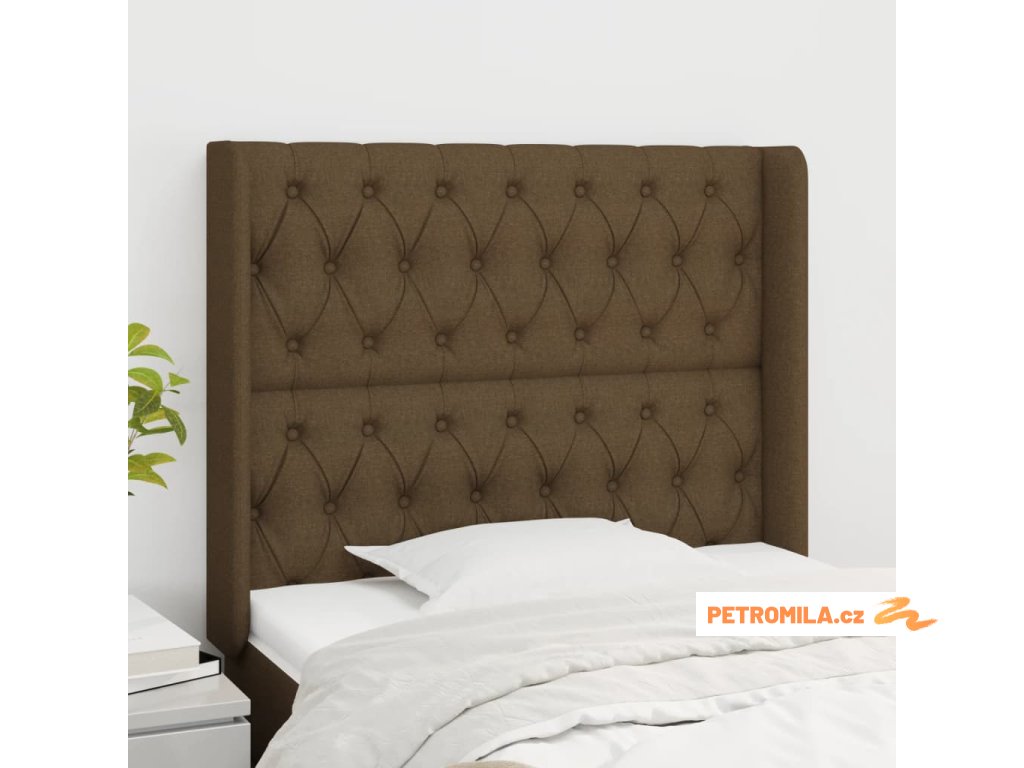 Čelo postele typu ušák tmavě hnědé 93x16x118/128 cm textil