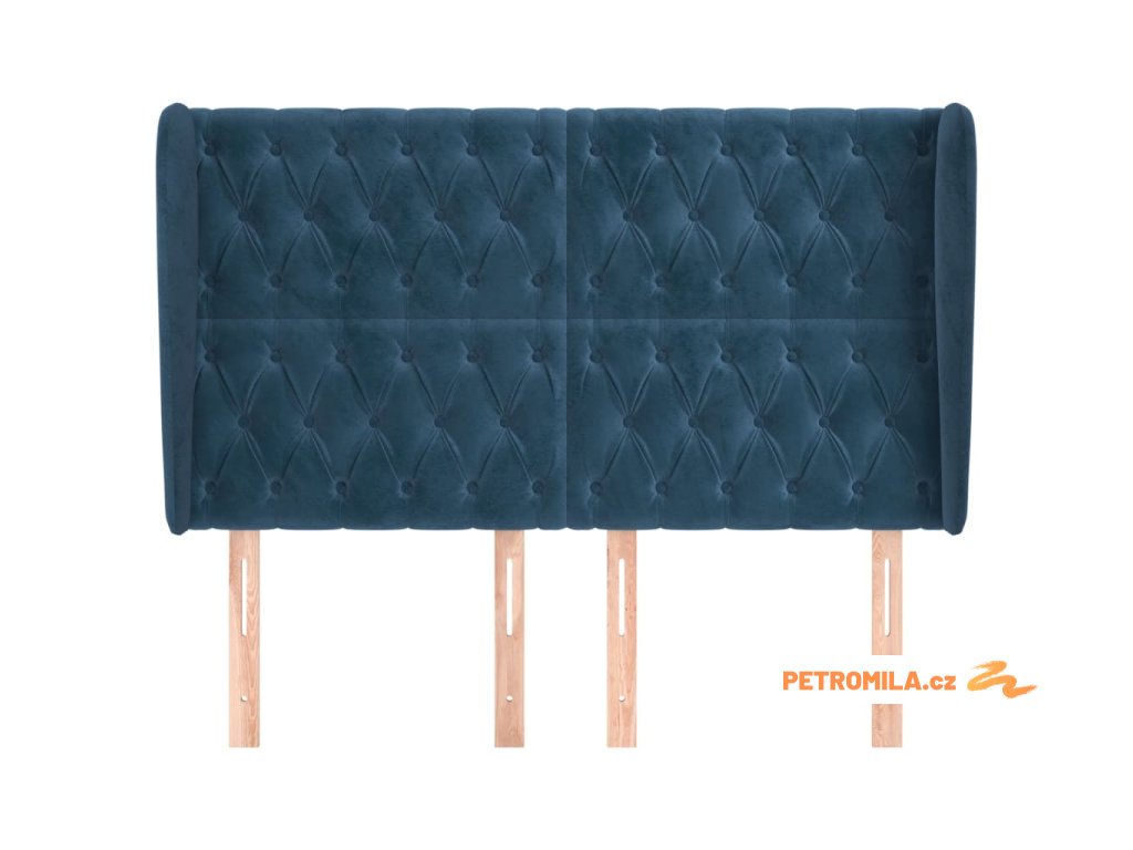 Čelo postele typu ušák tmavě modrá 147x23x118/128 cm samet