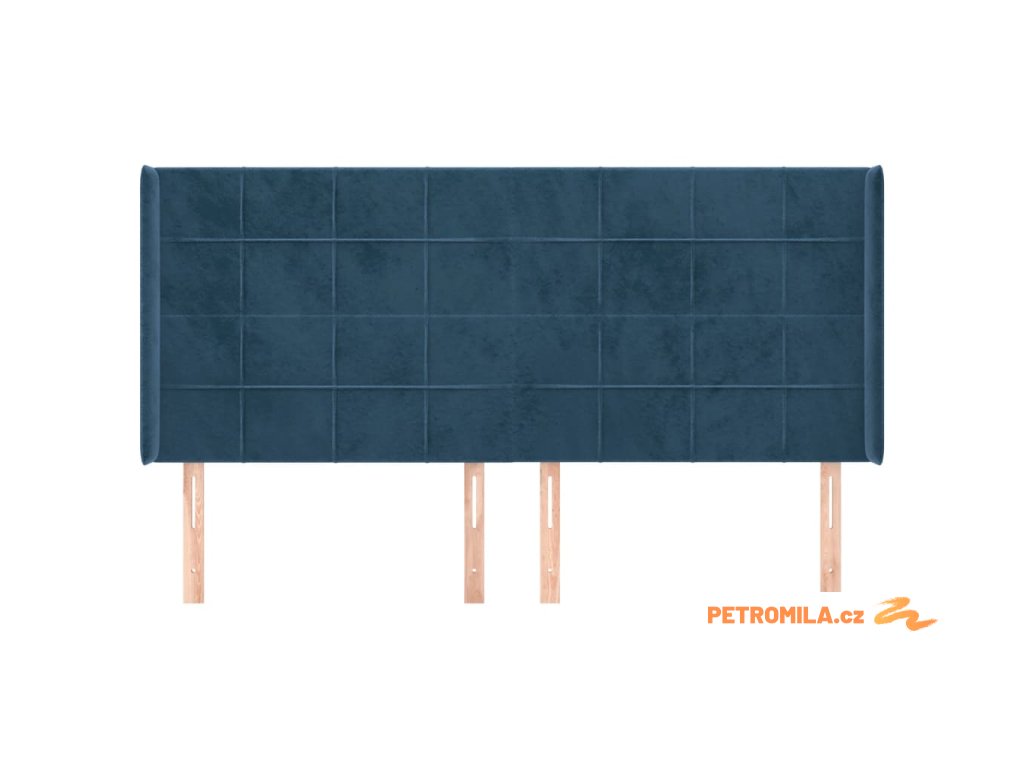 Čelo postele typu ušák tmavě modrá 183x16x118/128 cm samet