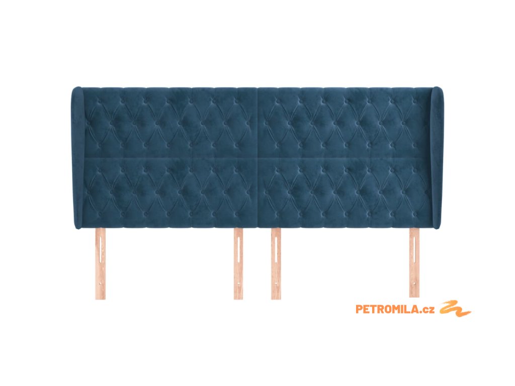 Čelo postele typu ušák tmavě modrá 183x23x118/128 cm samet