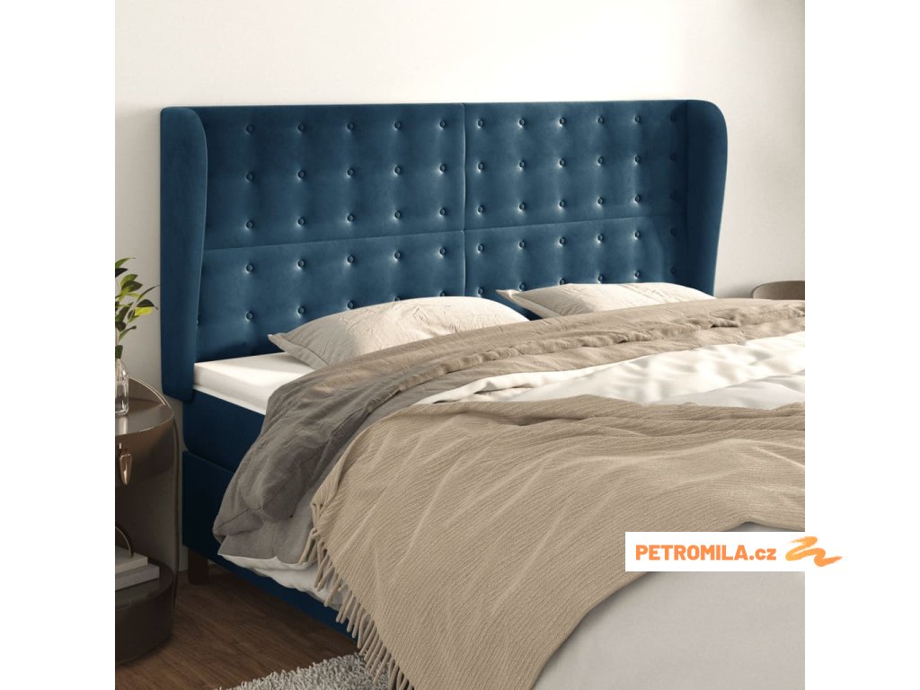 Čelo postele typu ušák tmavě modrá 183x23x118/128 cm samet