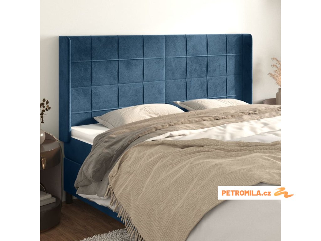 Čelo postele typu ušák tmavě modrá 203x16x118/128 cm samet