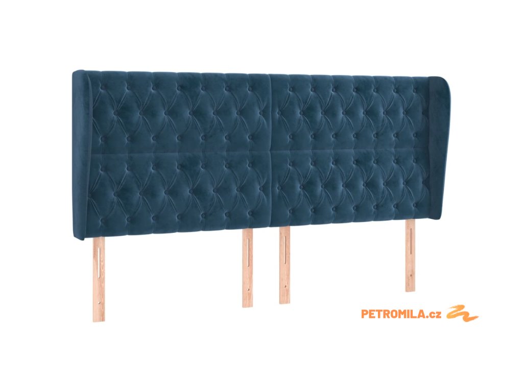 Čelo postele typu ušák tmavě modrá 203x23x118/128 cm samet