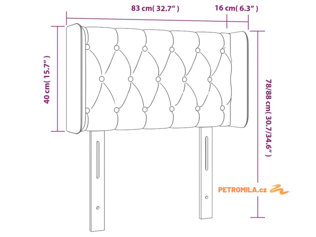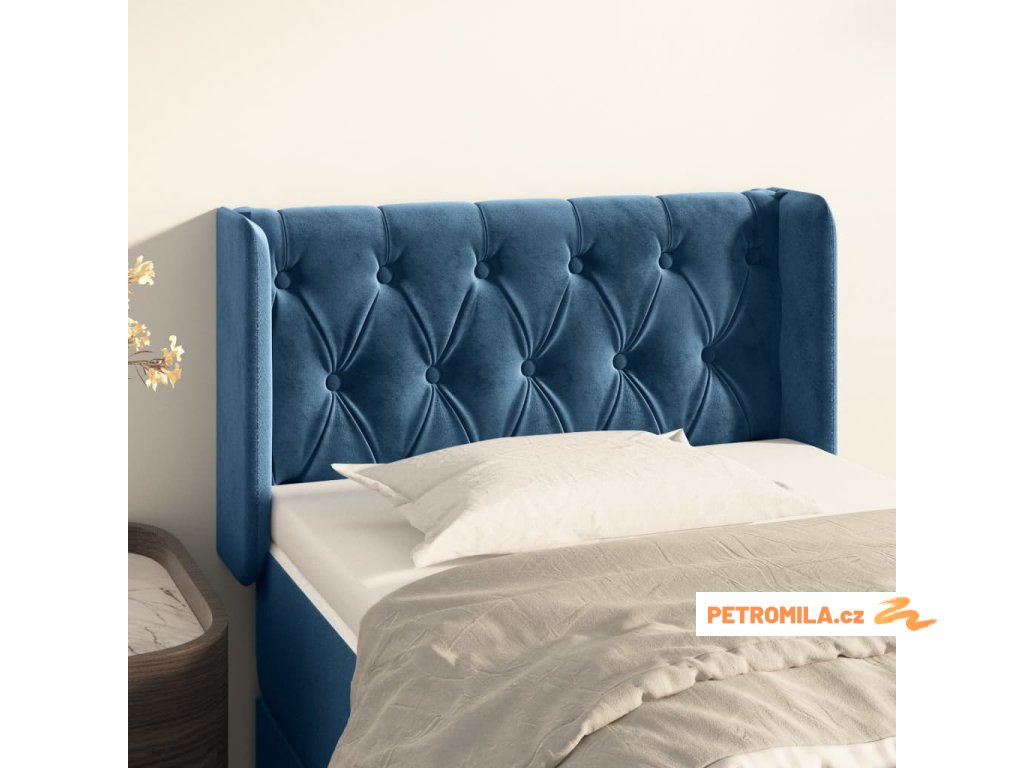 Čelo postele typu ušák tmavě modrá 83 x 16 x 78/88 cm samet