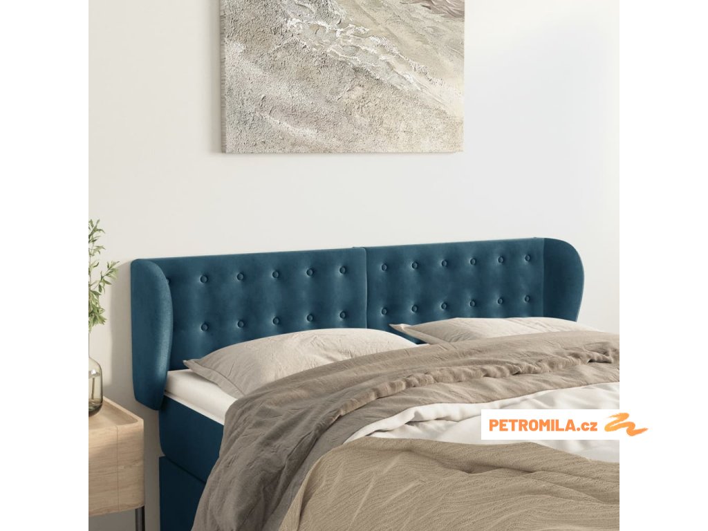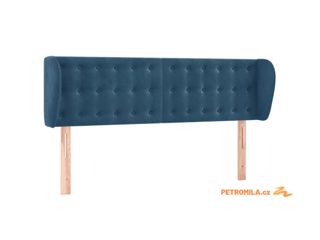 Čelo postele typu ušák tmavě modré 147x23x78/88 cm samet