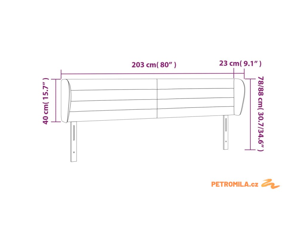 - Rozměry: 203 x 23 x 78/88 cm (Š x H x V)