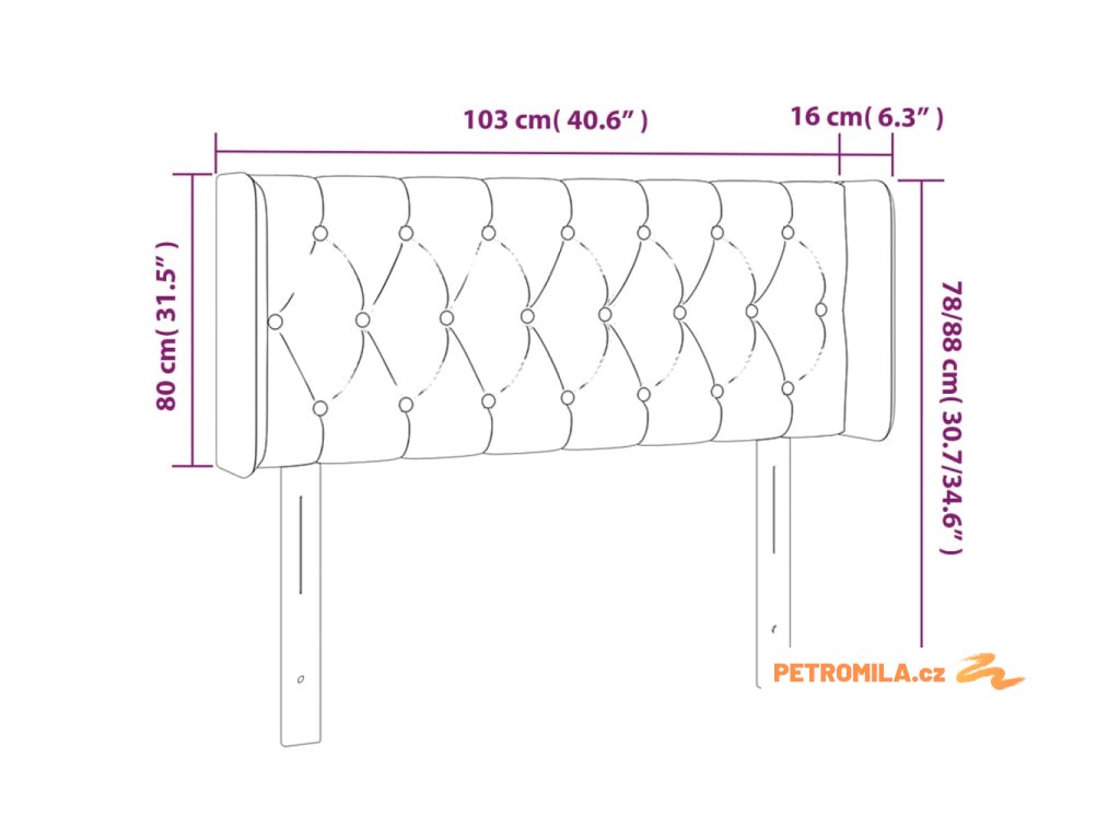 Čelo postele typu ušák tmavě šedé 103x16x78/88 cm textil
